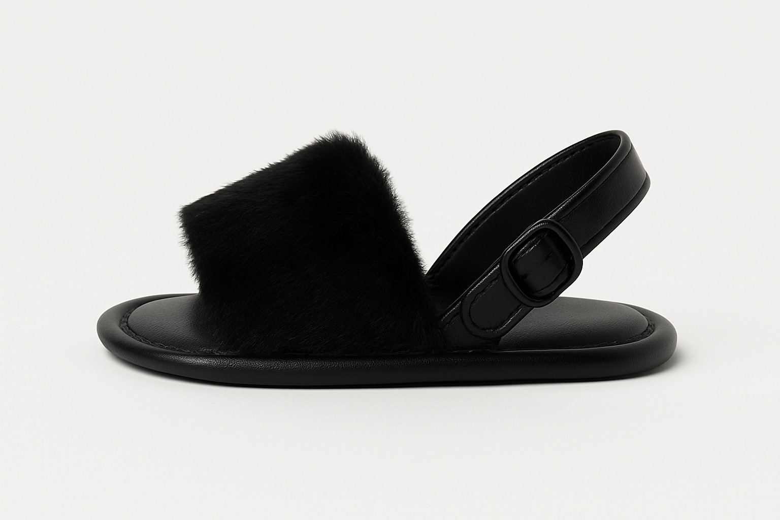 These Dovey Fur sandals are designed to keep little feet comfy and stylish. Made with a soft faux-fur front strap and a cushioned footbed, they offer a cozy feel while staying lightweight for everyday wear. The back strap ensures a secure fit so kids can move freely. Perfect for adding a touch of cute comfort to any outfit, whether indoors or out.